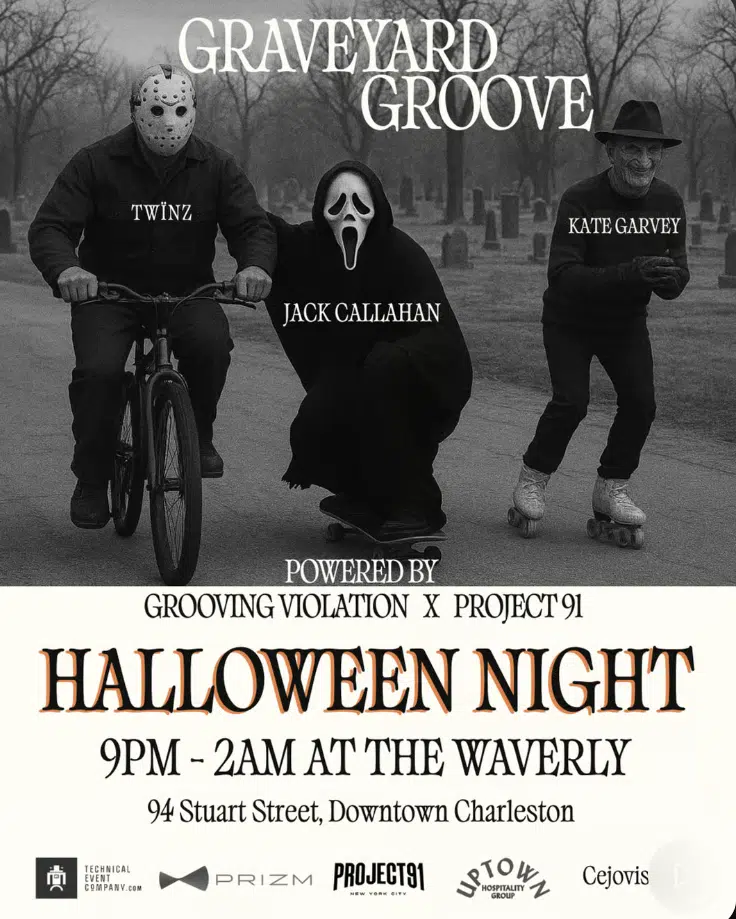 21+ | We can’t think of a better way to celebrate Halloween night than an unforgettable indoor and outdoor collaboration between NYC-based Project 91 Events and Charleston’s Grooving Violation. Taking over the city’s newest event space, The Waverly, this will be the first chance to experience the venue’s energy on a night made for dancing.With a full Void Audio system and lighting from PRIZM with support from Technical Event Company, expect crystal-clear sound, polished visuals, and a truly elevated atmosphere. This is Halloween in Charleston like you’ve never seen.LINEUP